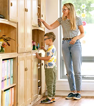 Unsere ästhetischen Holzmöbel sind einfach und vielseitig, so dass Ihre Kinder die Möglichkeit haben, ihre Fantasie in einer natürlichen, ruhigen Umgebung zu nutzen, dass sie an einem Ort spielen und lernen können, der speziell für sie gemacht ist.