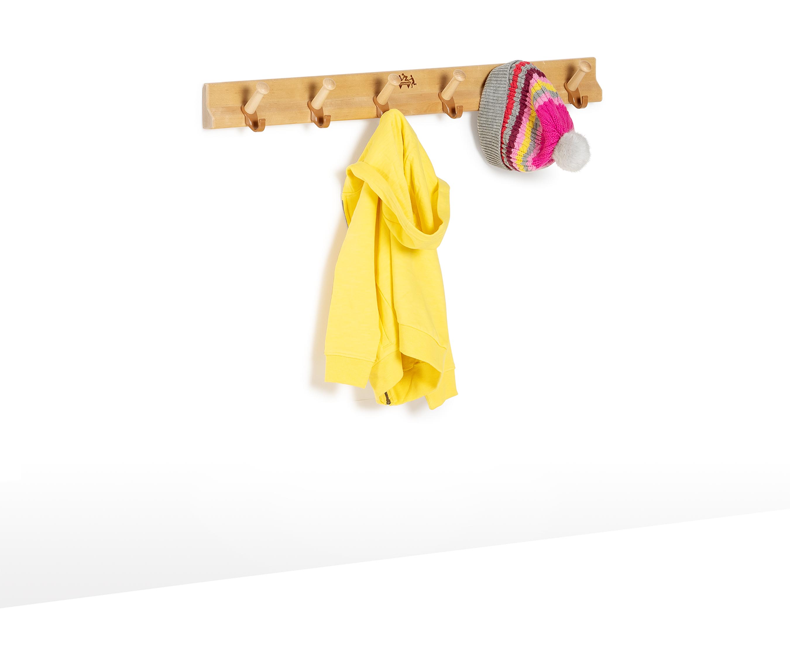 Wenn Sie wirklich nur Kleiderhaken brauchen! Diese schönen Hakenleisten sind für Kinder leicht zu benutzen und eignen sich ideal für Jacken und Taschen.