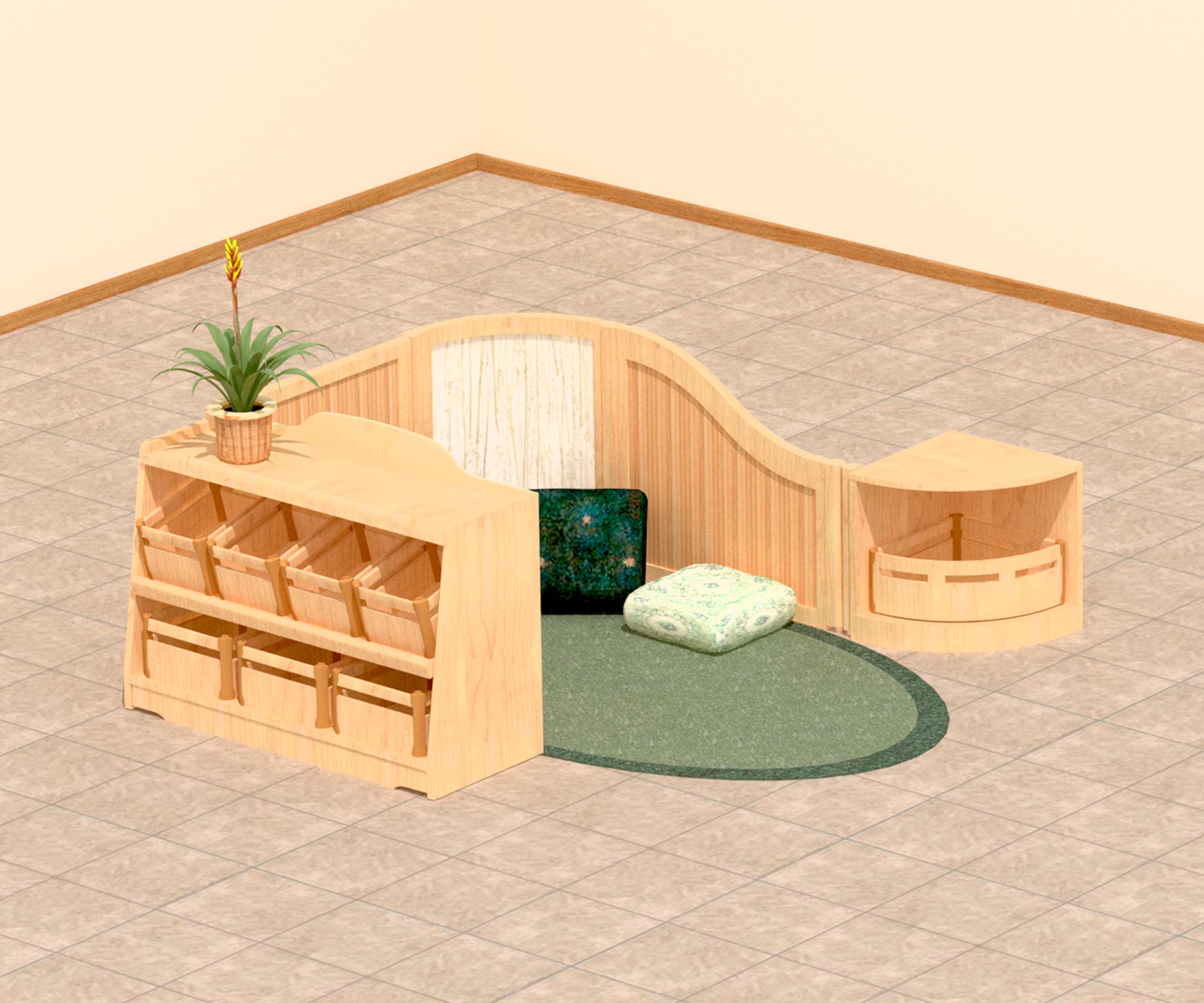 Warmer Bambus und natürliches Reisgras laden die Kinder auf diese Entdeckerinsel ein. Mit Raum für Aufbewahrung und Präsentation.