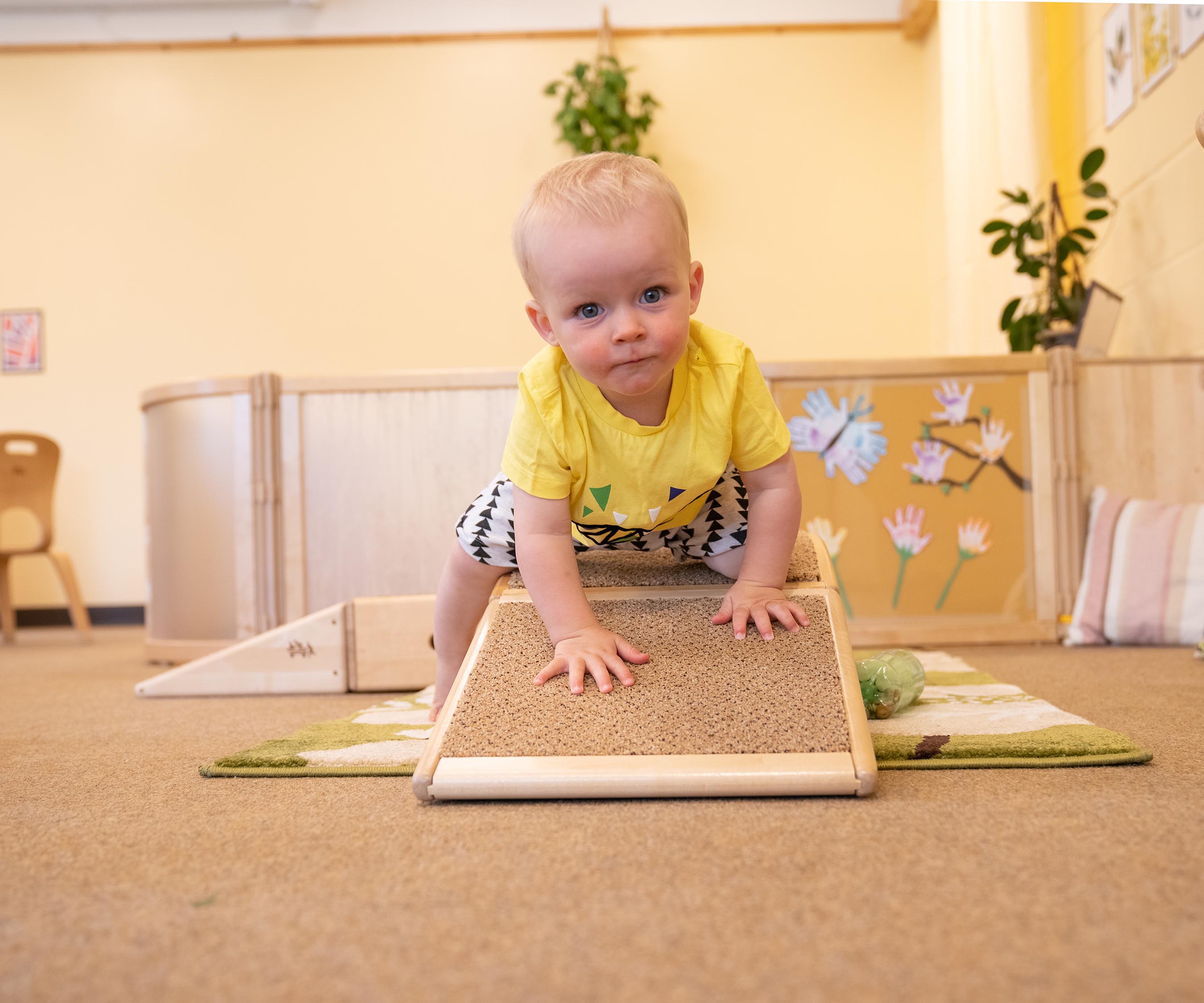 In Kombination mit anderen Krabbelboxen bauen Sie gewundene Pfade, die zu Bewegung einladen. Die Neigung der Rampe ist eine zusätzliche Herausforderung für den Gleichgewichtssinn. Die Elemente lassen sich mit speziellen Kupplungsstücken verbinden und können leicht umgestellt werden.