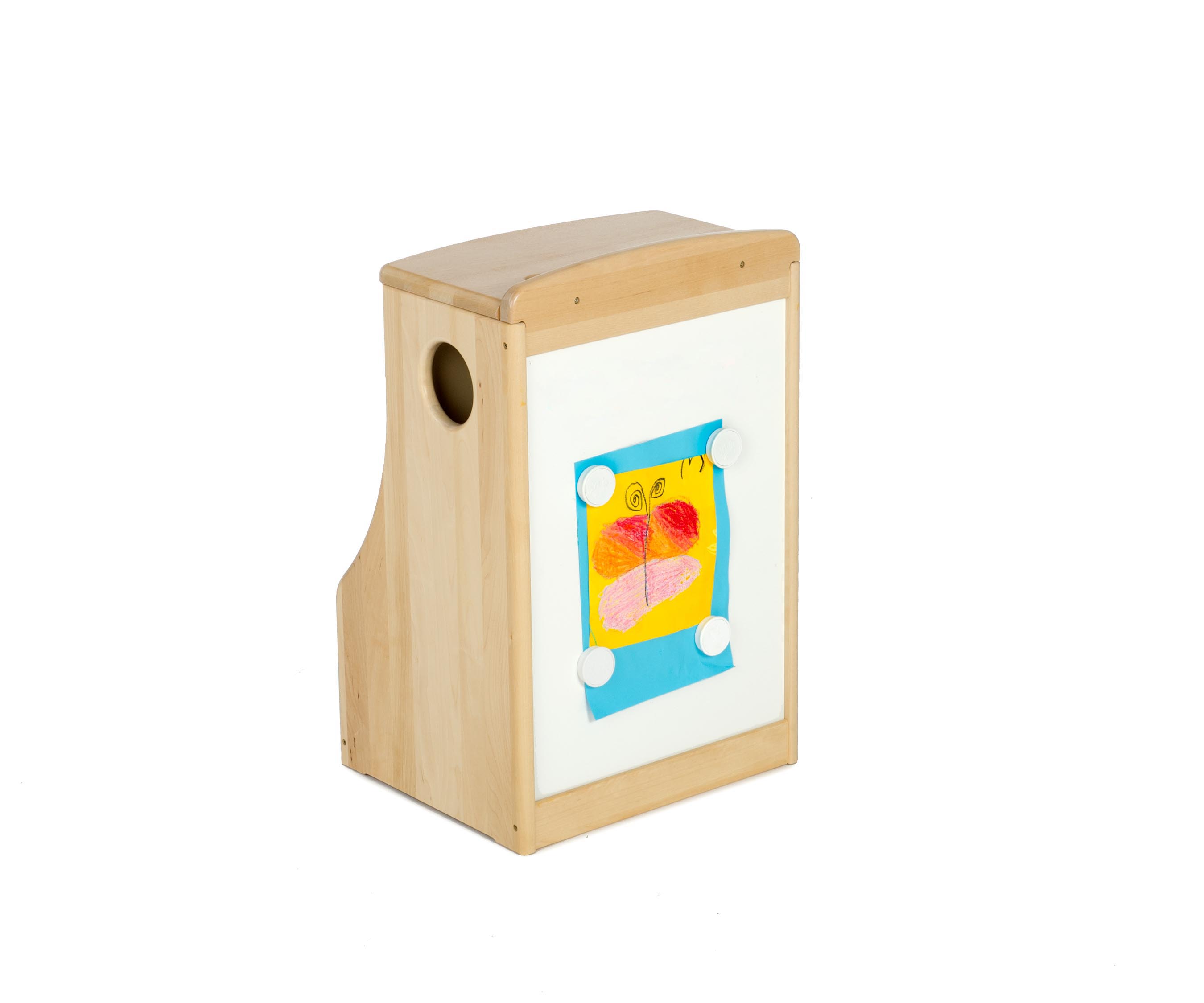 Dieses Spielregal aus Massivholz ist eine elegante Ergänzung für Ihren Rollenspielbereich und wird die Fantasie der Kinder beflügeln. Perfekt für jede Küche, jeden Friseursalon, jedes Café, jede Arztpraxis… die Liste ist endlos! Dieses Set hat eine magnethaftende Whiteboard-Rückseite und wird mit einem flachen Kunststoffkasten und vier Magneten geliefert. Stapeln Sie das Möbel auf ein Schubladenelement, um es mit Ihren Kindern mitwachsen zu lassen.